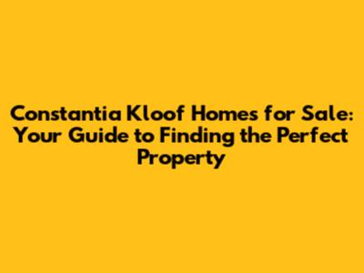 Constantia Kloof Homes For Sale: Your Guide To Finding The Perfect Property