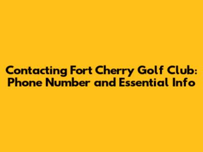 Contacting Fort Cherry Golf Club: Phone Number And Essential Info