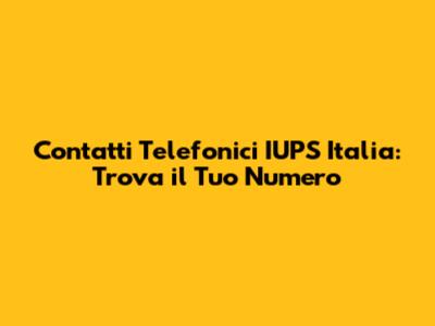 Contatti Telefonici IUPS Italia: Trova Il Tuo Numero