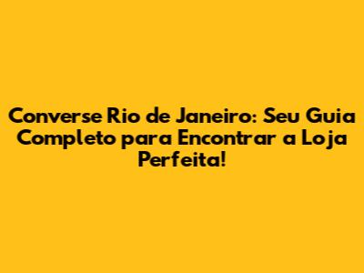 Converse Rio De Janeiro: Encontre Sua Loja Ideal!