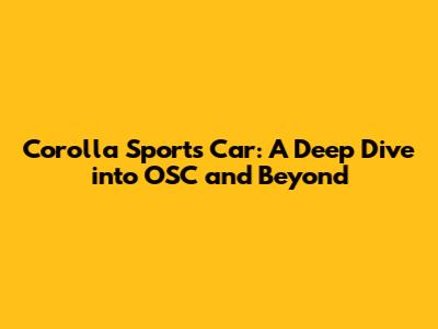 Corolla Sports Car: A Deep Dive Into OSC And Beyond