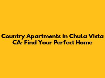 Country Apartments In Chula Vista CA: Find Your Perfect Home