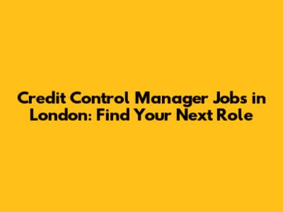 Credit Control Manager Jobs In London: Find Your Next Role