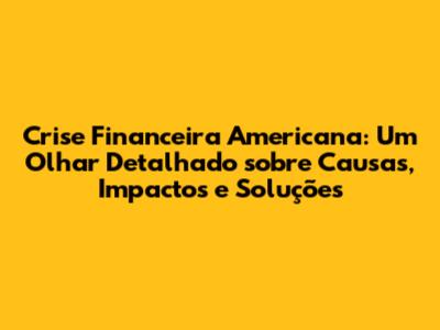 Crise Financeira Americana: Causas, Impactos E Soluções