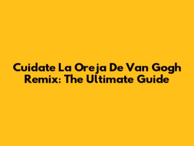 Cuidate La Oreja De Van Gogh Remix: The Ultimate Guide