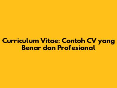 Curriculum Vitae: Contoh CV Yang Benar Dan Profesional