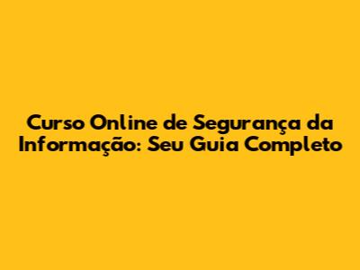 Curso Online De Segurança Da Informação: Seu Guia Completo
