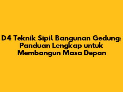 D4 Teknik Sipil Bangunan Gedung adalah pilihan pendidikan yang sangat baik bagi mereka yang tertarik dengan dunia konstruksi. Dengan kurikulum yang komprehensif, pengalaman praktis yang berlimpah, dan prospek karir yang menjanjikan, kalian akan siap untuk membangun masa depan yang gemilang di industri konstruksi. Jangan ragu untuk mencari informasi lebih lanjut, bergabung dengan komunitas teknik sipil, dan terus belajar untuk mencapai tujuan kalian. Semangat membangun! Kalian bisa! Ingatlah, bahwa kesuksesan dimulai dari langkah pertama. Jadi, mulailah petualangan kalian hari ini!