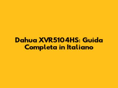 Dahua XVR5104HS: Guida Completa In Italiano