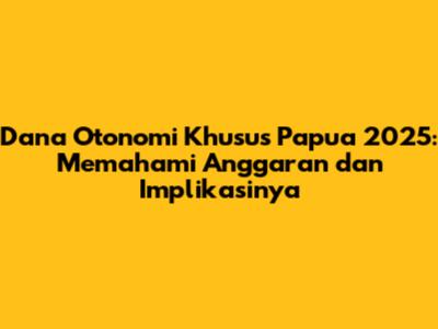 Dana Otonomi Khusus Papua adalah anggaran yang dialokasikan oleh pemerintah pusat untuk Provinsi Papua dan Papua Barat dalam rangka pelaksanaan otonomi khusus. Tujuannya adalah untuk mempercepat pembangunan, meningkatkan kesejahteraan masyarakat, dan menyelesaikan berbagai permasalahan yang ada di Papua. Dana ini merupakan bagian dari kebijakan desentralisasi yang memberikan kewenangan lebih besar kepada pemerintah daerah dalam mengelola sumber daya dan mengambil keputusan. It's a big deal, karena jumlahnya yang besar dan bertujuan untuk pembangunan yang signifikan.