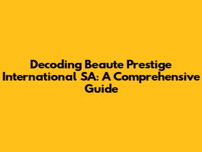 Decoding Beaute Prestige International SA: A Comprehensive Guide