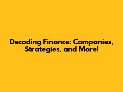 Decoding Finance: Companies, Strategies, And More!