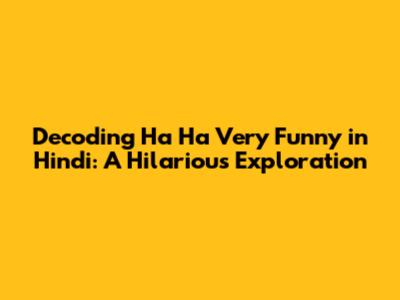 Decoding 'Ha Ha Very Funny' In Hindi: A Hilarious Exploration