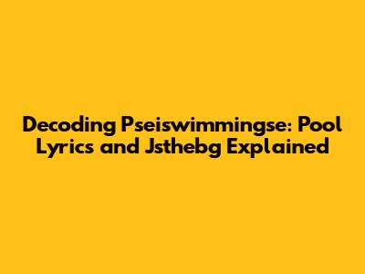 Decoding Pseiswimmingse: Pool Lyrics And Jsthebg Explained