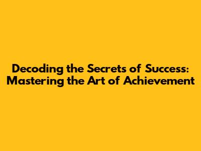 Decoding The Secrets Of Success: Mastering The Art Of Achievement