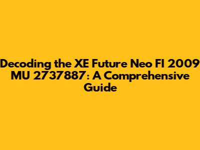 Decoding The XE Future Neo FI 2009 MU 2737887: A Comprehensive Guide