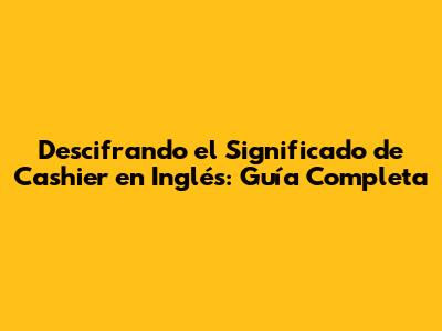 Descifrando El Significado De Cashier En Inglés: Guía Completa