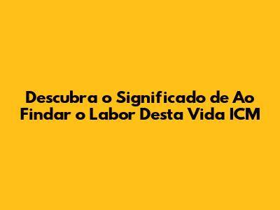 Entendendo o Coração da Expressão: "Ao Findar o Labor Desta Vida ICM"