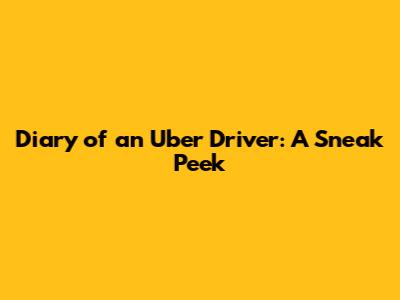 Diary Of An Uber Driver: A Sneak Peek