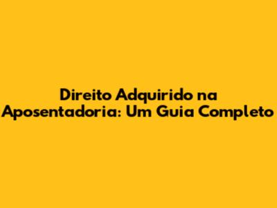 Direito Adquirido Na Aposentadoria: Entenda Tudo!
