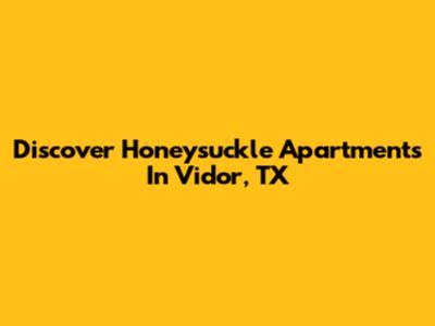 Hey guys! Ever wondered about finding a sweet spot to call home in Vidor, Texas? Well, let's dive into the world of Honeysuckle Apartments Vidor TX, a place that's been catching a lot of attention. When you're on the hunt for a new apartment, you're not just looking for four walls and a roof; you're searching for a community, a vibe, and a place that fits your lifestyle. Honeysuckle Apartments aims to deliver just that, right in the heart of Vidor. They've been working hard to create a living experience that blends comfort with convenience, making it a pretty attractive option for many folks in the area.