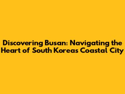 Discovering Busan: Navigating The Heart Of South Korea's Coastal City