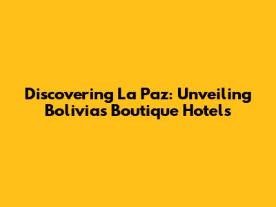 Discovering La Paz: Unveiling Bolivia's Boutique Hotels