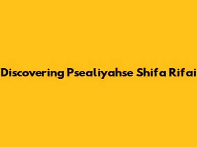 Discovering Psealiyahse Shifa Rifai
