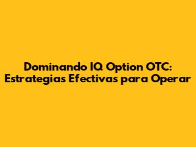 Dominando IQ Option OTC: Estrategias Efectivas Para Operar