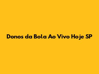 Donos Da Bola Ao Vivo: Assista Hoje Em SP!