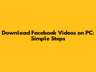 Download Facebook Videos On PC: Simple Steps