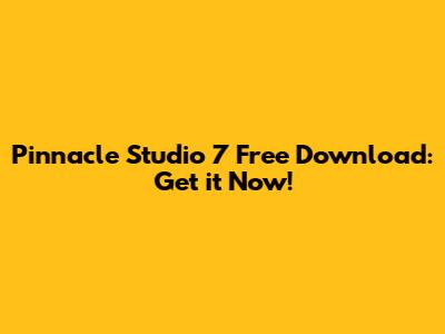 Download Pinnacle Studio 7 Free: Get It Now!