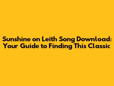 Hey guys! Are you trying to find the legendary song "Sunshine on Leith" to add to your playlist? You've come to the right place! This iconic track has captured hearts for decades, and knowing where to download it legally and safely is super important. In this article, we’ll explore the best options for getting your hands on this timeless tune. Let’s dive in and get you listening to "Sunshine on Leith" in no time!