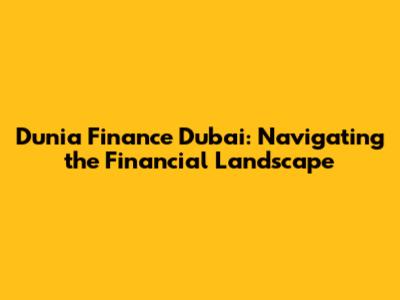 Understanding Dunia Finance and Its Dubai Operations