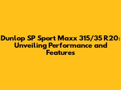 Dunlop SP Sport Maxx 315/35 R20: Specs, Reviews, And Performance