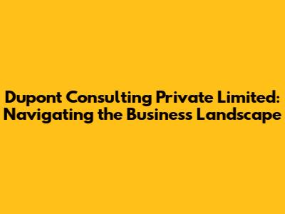 By understanding the core services, career opportunities, and insights provided by Dupont Consulting Private Limited, stakeholders can better appreciate the firm's role in shaping the future of business. As the business landscape continues to evolve, the expertise and guidance offered by Dupont Consulting will remain invaluable for organizations seeking to thrive and succeed.