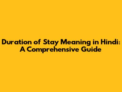 Duration Of Stay: Hindi Meaning & Complete Guide
