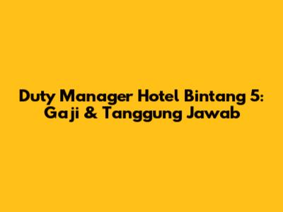 Duty Manager Hotel Bintang 5: Gaji & Tanggung Jawab