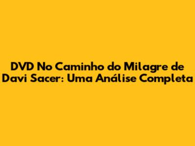 DVD 'No Caminho Do Milagre' De Davi Sacer: Uma Análise Completa
