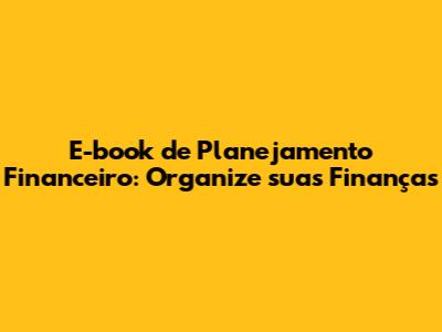 E-book De Planejamento Financeiro: Organize Suas Finanças
