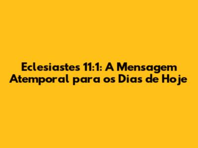Portanto, a mensagem central de Eclesiastes 11:1 é clara: não tenha medo de agir, de investir em algo que você acredita, de tomar iniciativas. A vida é feita de oportunidades. É preciso aproveitar cada uma delas. Mesmo que o resultado não seja imediato, a recompensa virá no tempo certo. E lembre-se, cada ação, por menor que seja, pode gerar grandes resultados no futuro.
