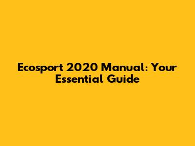 Ecosport 2020 Manual: Your Essential Guide