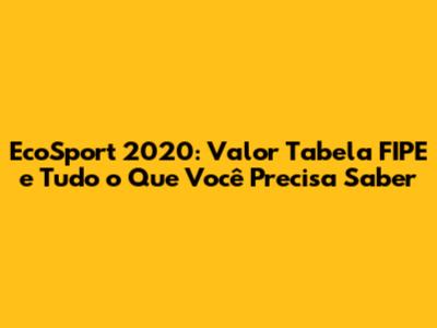 Hey guys! So, you're here because you're curious about the EcoSport 2020 and its FIPE table value, right? Awesome! Let's dive in and unravel everything you need to know about this popular compact SUV. We'll chat about the FIPE table, what it means for you, and how to use it. Plus, we'll cover other key aspects of the EcoSport 2020, like its features, performance, and what to consider if you're thinking of buying or selling one. Buckle up; this is going to be a fun ride!