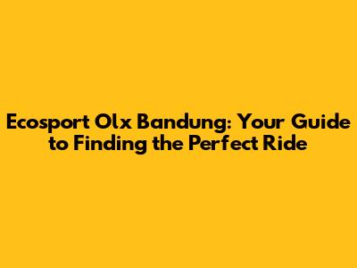Ecosport Olx Bandung: Your Guide To Finding The Perfect Ride