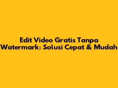 Edit Video Gratis Tanpa Watermark: Solusi Cepat & Mudah