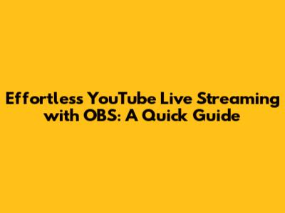 Effortless YouTube Live Streaming With OBS: A Quick Guide