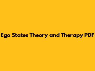 Ego States: Theory, Therapy, And PDF Resources