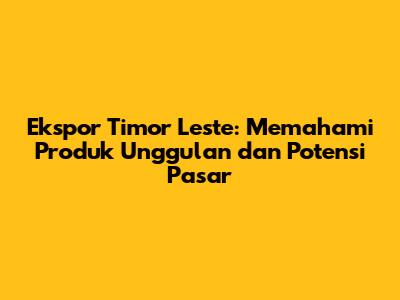 Ekspor Timor Leste: Produk Unggulan Dan Peluang Pasar
