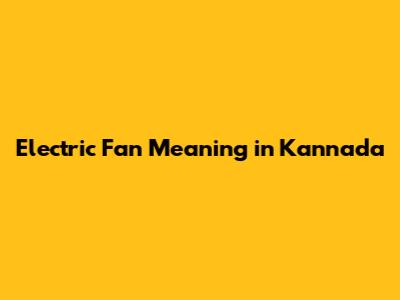 Electric Fan In Kannada: What's It Called?