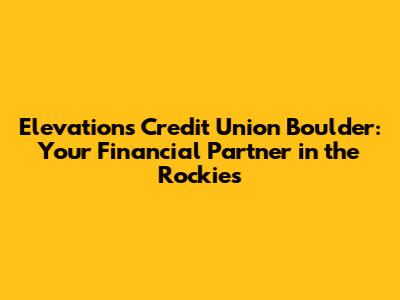 Elevations Credit Union In Boulder: Your Local Financial Guide